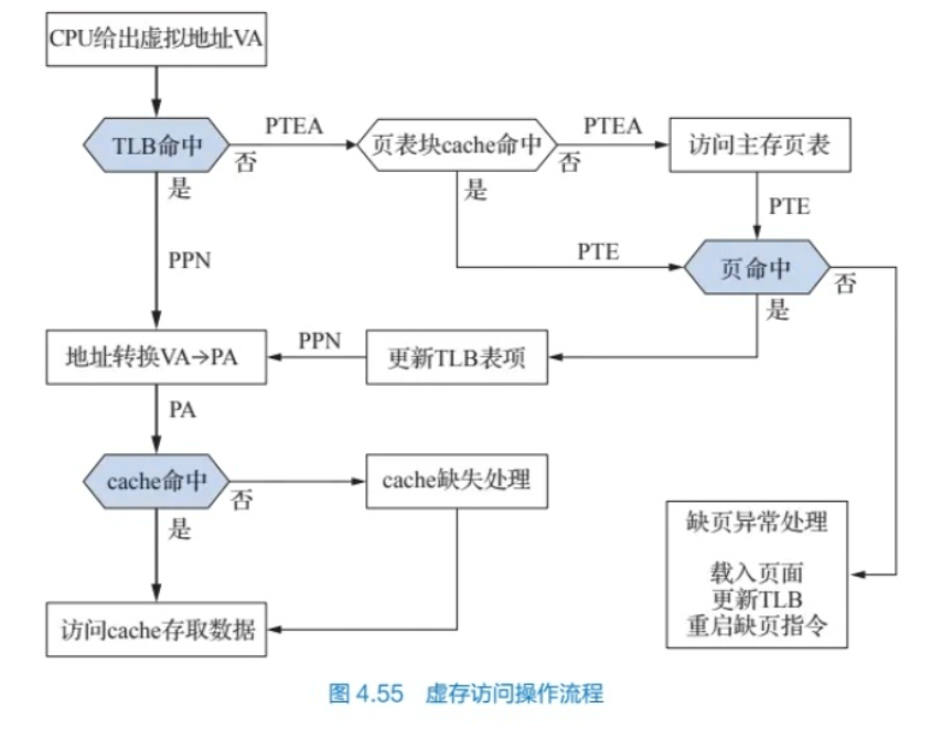 TLB:页表的cache(把vpn分为tag+offset) PTE:页表
