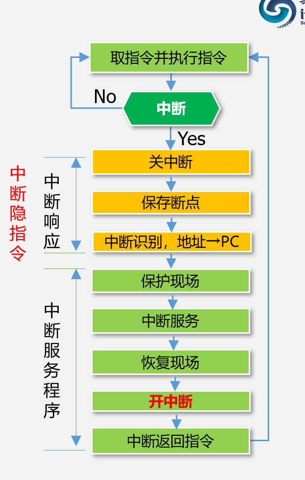关中断,保护断点,中断源识别