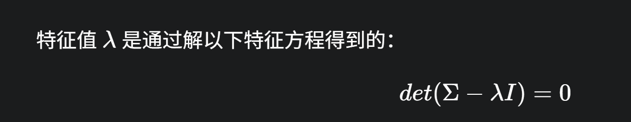 对于每个特征值 λ,我们需要解 (Σ−λI)v=0 来找到对应的特征向量 v=(v1v2)。